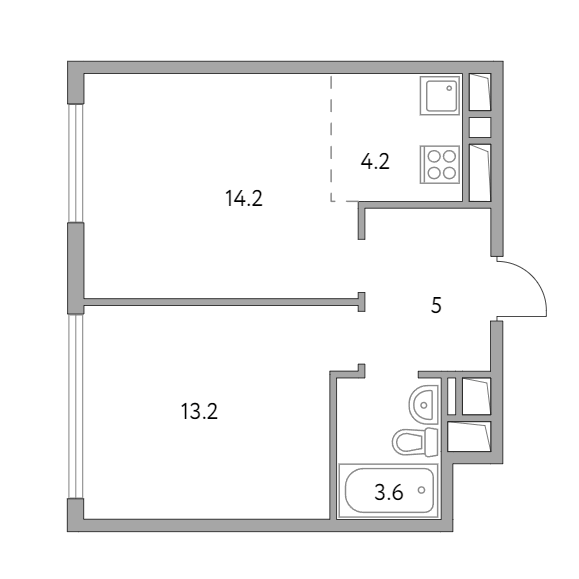 Сдача в 2026 году 13.2, 14.2 м2 4.2 м2