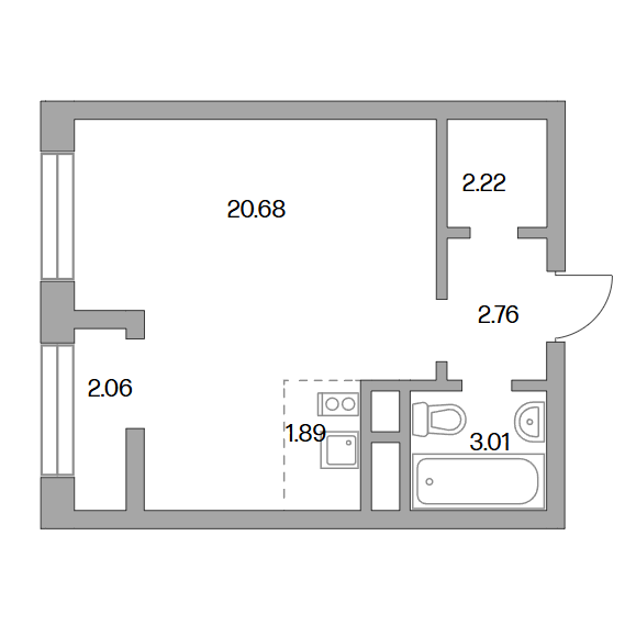 Студия 32.62 м2, этаж 2/6Сдача в 2026 году