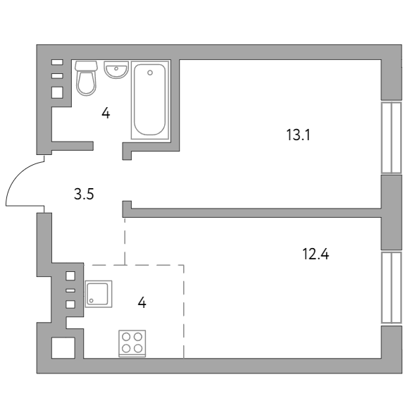 Сдача в 2024 году 12.4, 13.1 м2