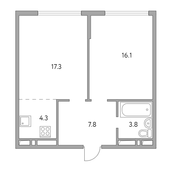 Сдача в 2026 году 16.1, 17.3 м2 4.3 м2