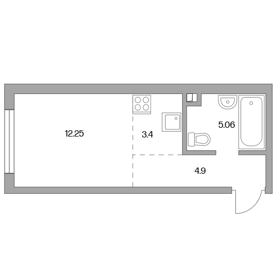 Студия 25.61 м2, этаж 3/23Сдача в 2027 году