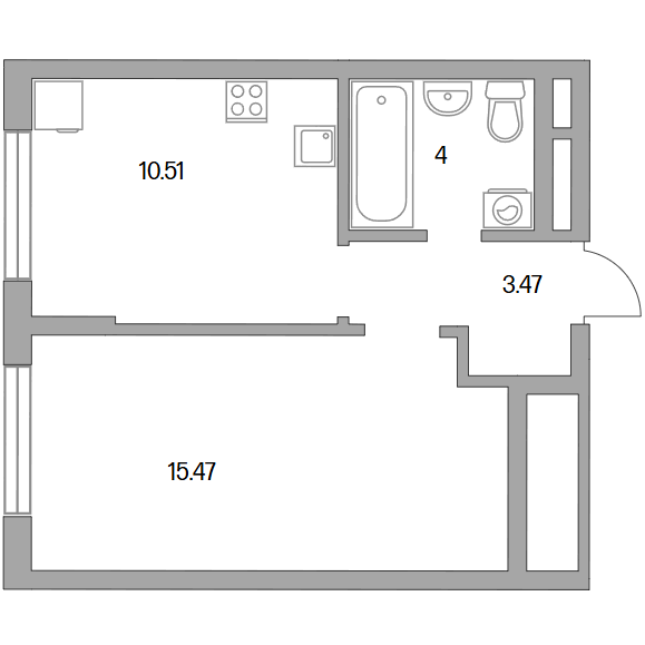 1-комн. квартира 33.45 м2, этаж 14/15Сдача в 2027 году