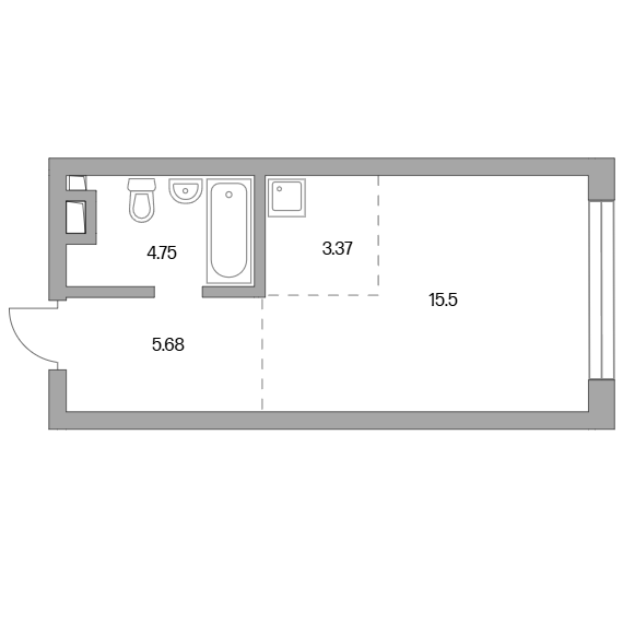 Сдача в 2026 году 10.68, 12.06, 16 м2 18.53 м2