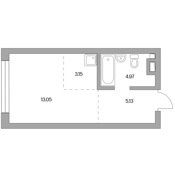 Студия 26.3 м2, этаж 2/13Сдача в 2027 году
