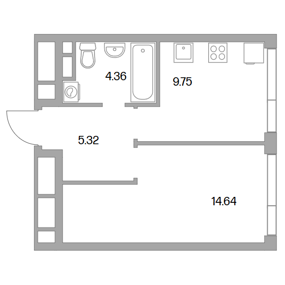 Сдача в 2026 году 13.42, 13.44, 14.53 м2 12.47 м2