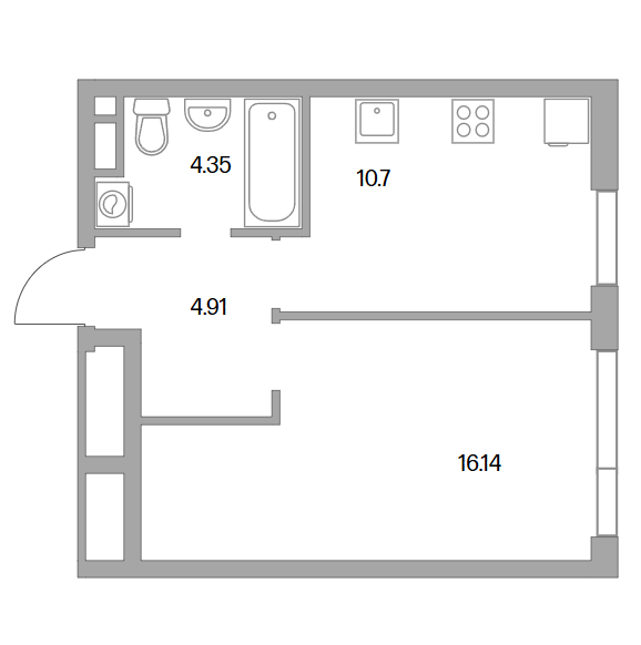 1-комн. квартира 41.4 м2, этаж 11/24Сдача в 2021 году