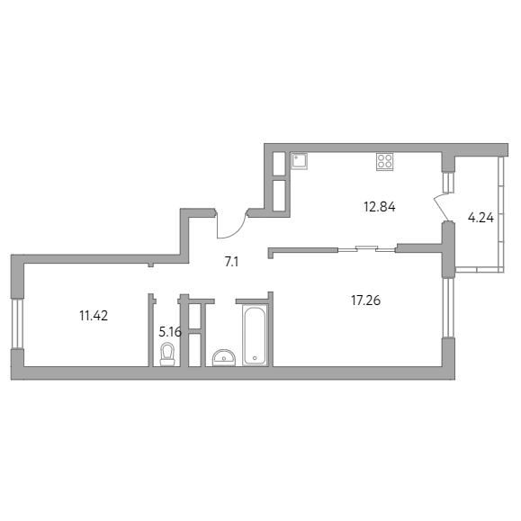 Сдача в 2027 году 11.42, 17.26 м2 12.84 м2