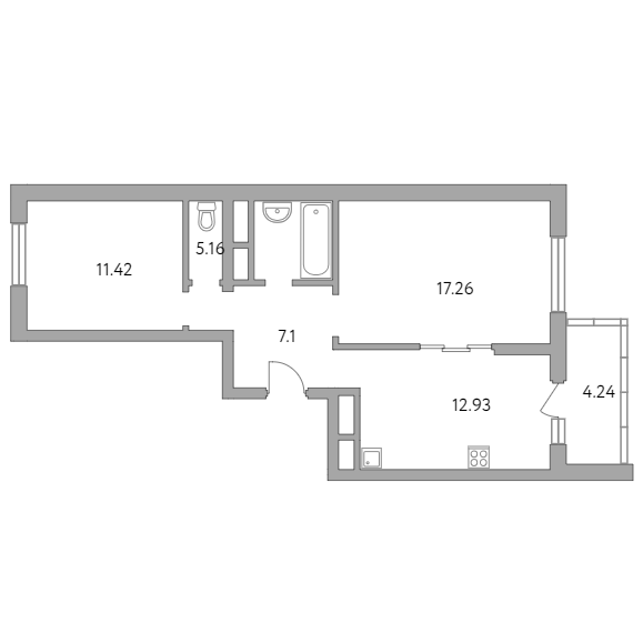 Сдача в 2027 году 11.42, 17.26 м2 12.93 м2