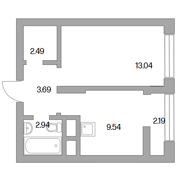 1-комн. квартира 33.6 м2, этаж 13/17Сдача в 2024 году