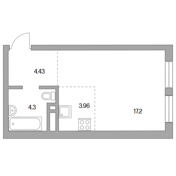 Студия 30.24 м2, этаж 18/23Сдача в 2027 году