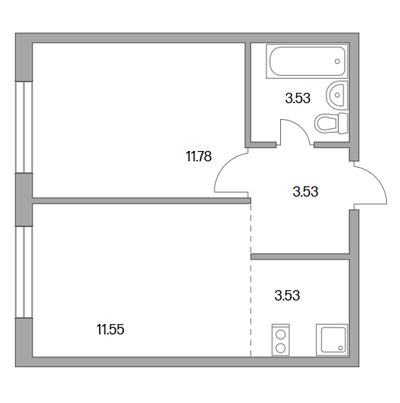 Сдача в 2026 году 11.55, 11.78 м2 3.53 м2