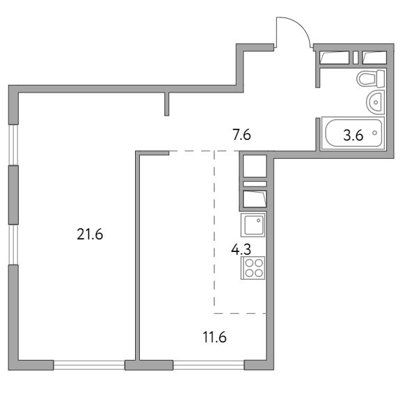 Сдача в 2026 году 11.6, 21.6 м2 4.3 м2