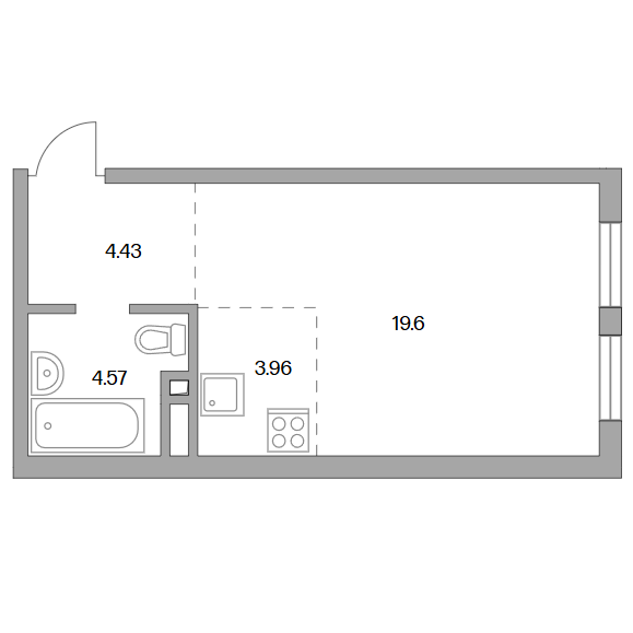 Студия 26.6 м2, этаж 3/26Сдача в 2022 году