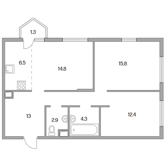 Сдача в 2026 году 12.4, 14.8, 15.8 м2
