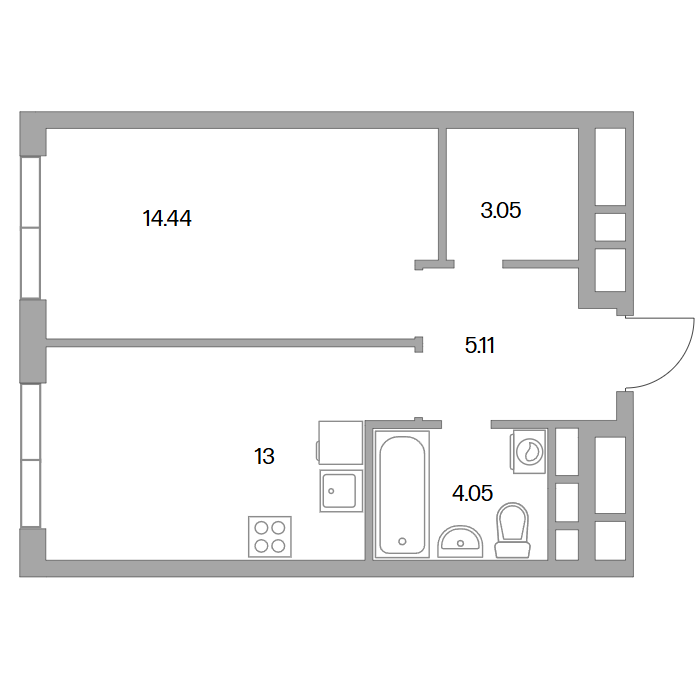 Сдача в 2024 году 14.5 м2 18.4 м2