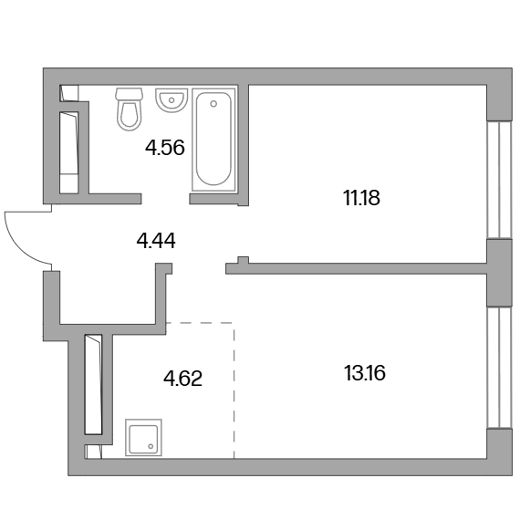 Сдача в 2027 году 11.18, 13.16 м2 4.62 м2