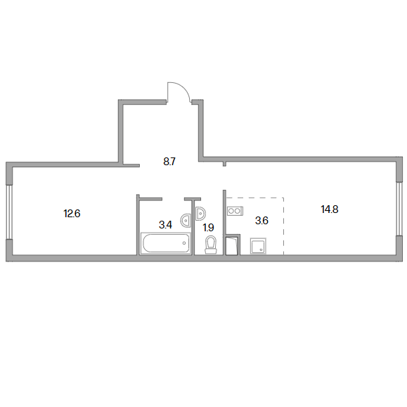 Сдача в 2026 году 12.6, 14.8 м2 3.6 м2