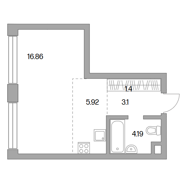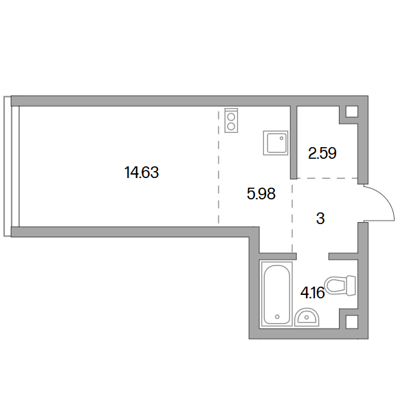 Студия 30.24 м2, этаж 20/14Сдача в 2028 году