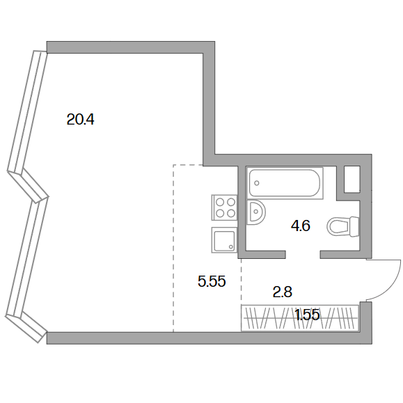 Студия 32.82 м2, этаж 7/14Сдача в 2028 году