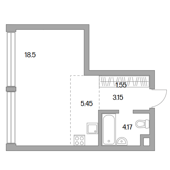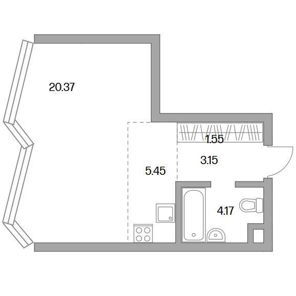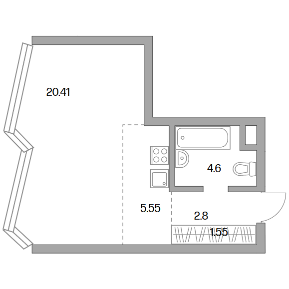 Студия 31.09 м2, этаж 20/21Сдача в 2023 году