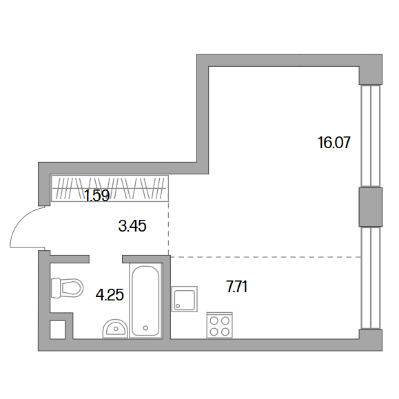 Сдача в 2025 году 12.52, 12.87, 16.28 м2 15.71 м2