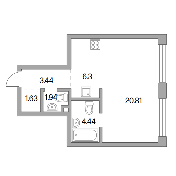 Студия 32.82 м2, этаж 10/14Сдача в 2028 году