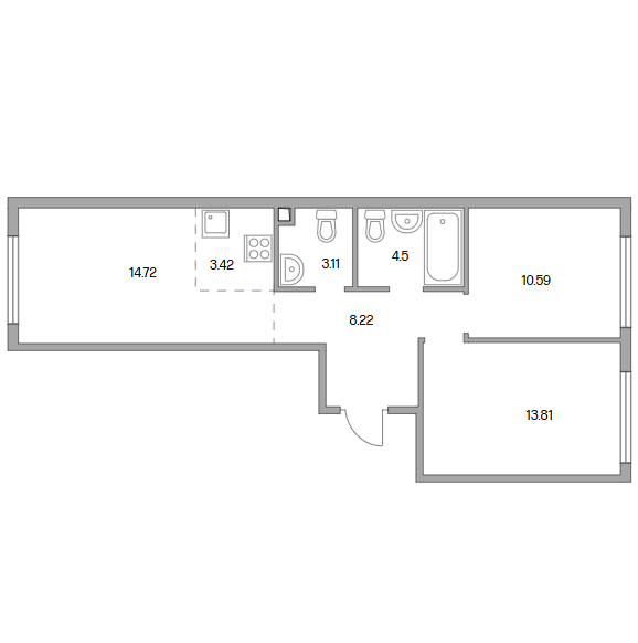 Сдача в 2027 году 10.59, 13.81, 14.72 м2 3.42 м2