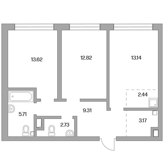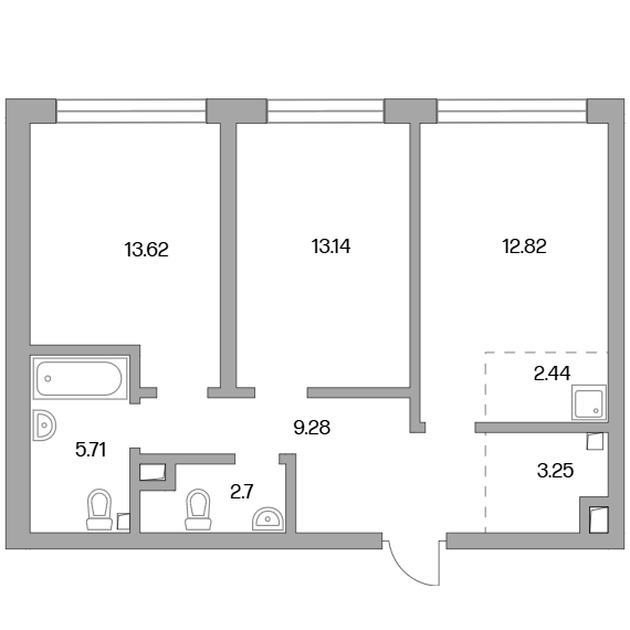 Сдача в 2027 году 12.82, 13.14, 13.62 м2 2.44 м2