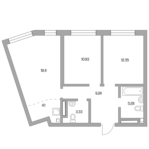 Сдача в 2027 году 10.93, 12.35, 18.4 м2 4.1 м2