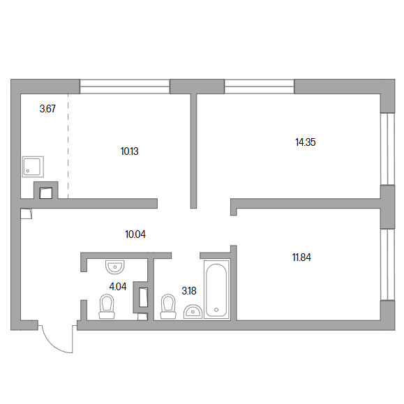 Сдача в 2027 году 10.13, 11.84, 14.35 м2 3.67 м2