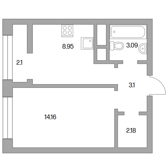 1-комн. квартира 33.58 м2, этаж 15/6Сдача в 2026 году