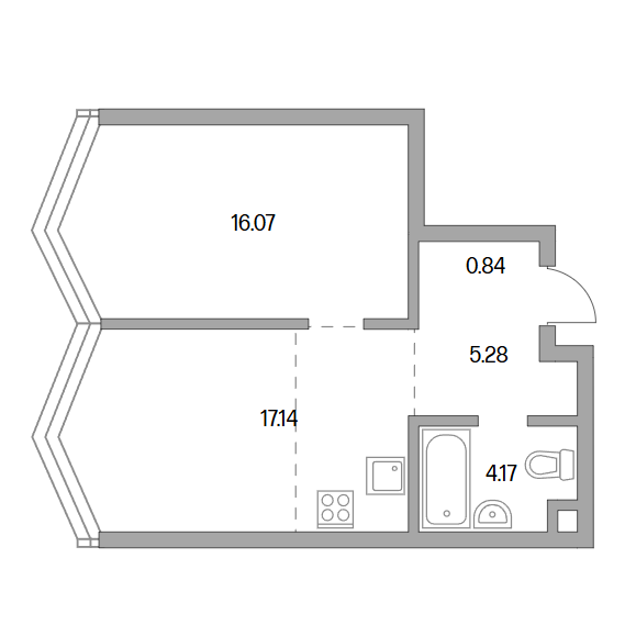 1-комн. квартира 43.5 м2, этаж 16/14Сдача в 2028 году
