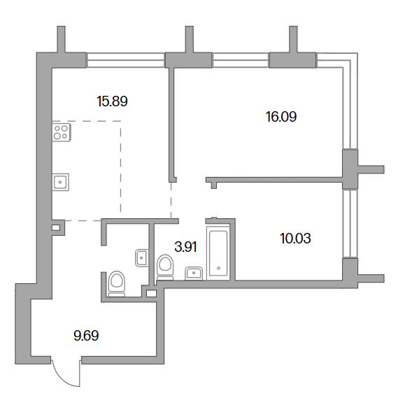 Сдача в 2028 году 10.03, 16.09 м2 15.89 м2