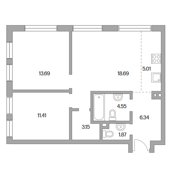 Сдача в 2027 году 11.41, 13.69, 18.69 м2 5.01 м2