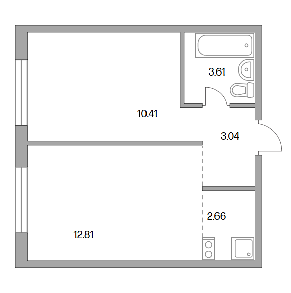 Сдача в 2026 году 10.41, 12.81 м2 2.66 м2