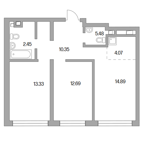 Сдача в 2027 году 12.69, 13.33, 14.89 м2 4.07 м2