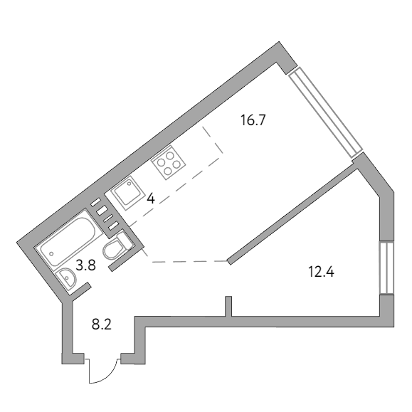 2-комн. квартира 40.2 м2, этаж 14/14Сдача в 2024 году