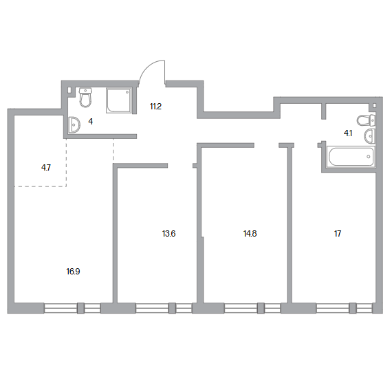 Сдача в 2027 году 13.6, 14.8, 16.9, 17 м2 4.7 м2