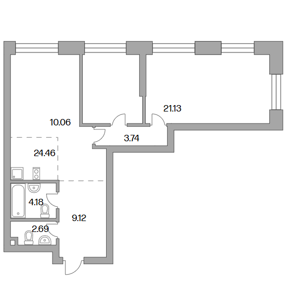 Сдача в 2028 году 10.06, 21.13 м2 24.46 м2