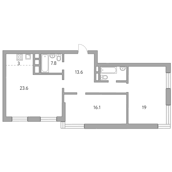 Сдача в 2026 году 16.1, 19, 23.6 м2