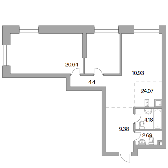 Сдача в 2028 году 10.93, 20.64 м2 24.07 м2