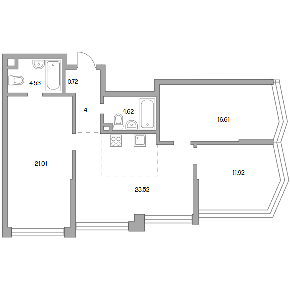 Сдача в 2028 году 11.92, 16.61, 21.01 м2 23.52 м2