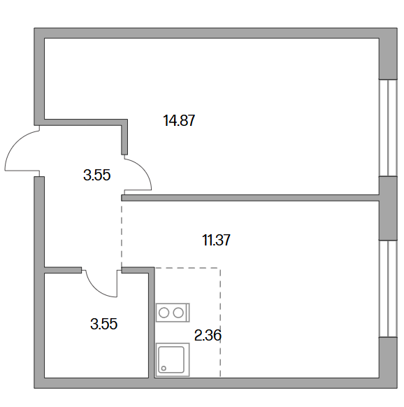 Сдача в 2026 году 11.37, 14.87 м2 2.36 м2