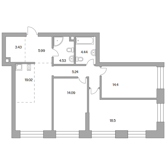 Сдача в 2028 году 14.09, 14.4, 18.5 м2 19.02 м2