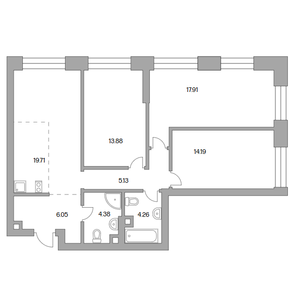 3-комн. квартира 85.51 м2, этаж 19/22Сдача в 2028 году