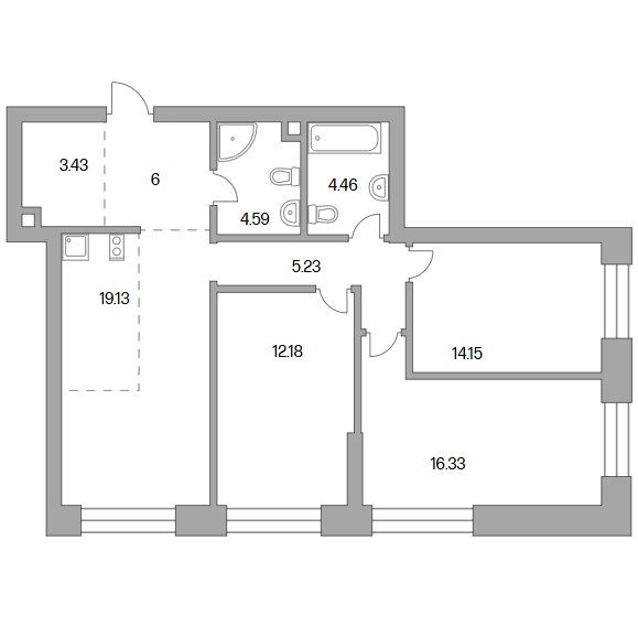 Сдача в 2028 году 12.18, 14.15, 16.33 м2 19.13 м2