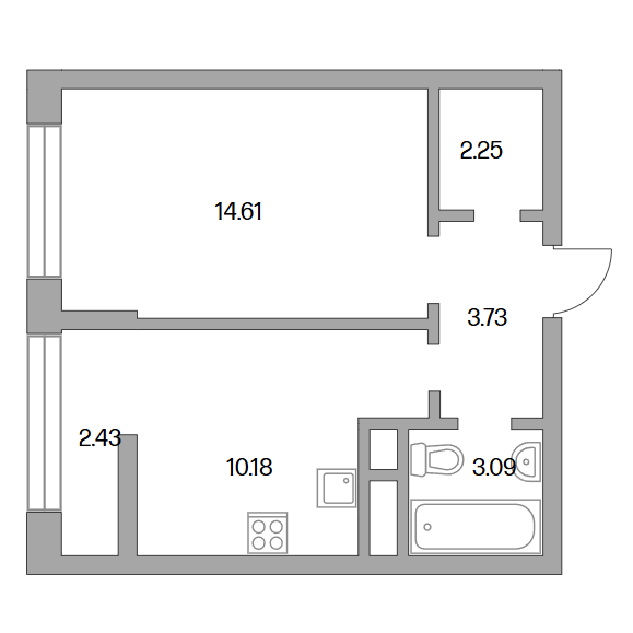 1-комн. квартира 18.5 м2, этаж 9/11Сдача в 2024 году