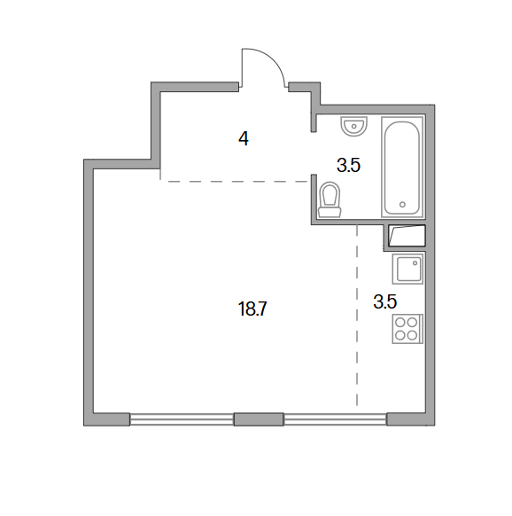 Студия 31.1 м2, этаж 1/7Сдача в 2026 году