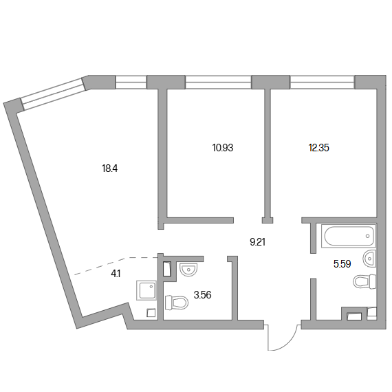 Сдача в 2027 году 10.93, 12.35, 18.4 м2 4.1 м2