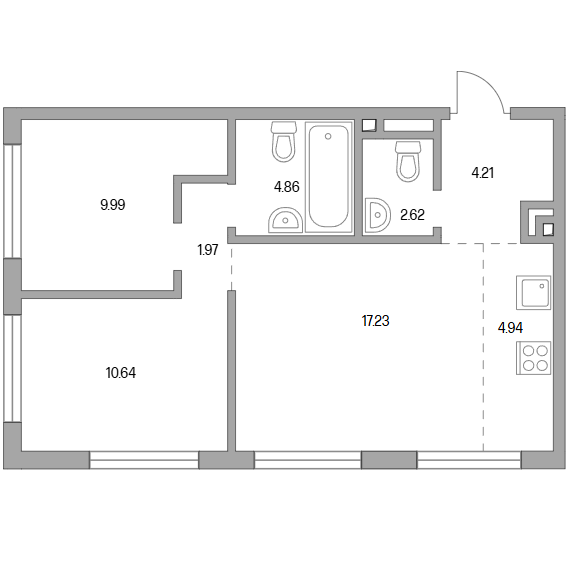 Сдача в 2027 году 10.64, 17.23, 9.99 м2 4.94 м2